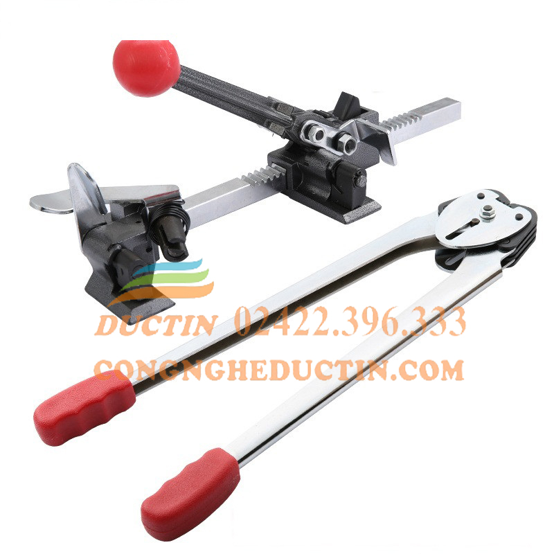 - Dụng cụ siết dây đai dùng để kéo căng dây đai để chuẩn bị cho việc kẹp bọ sắt. Quá trình kéo căng vừa phải để sản phẩm chắc chắn mà không bị móp méo.