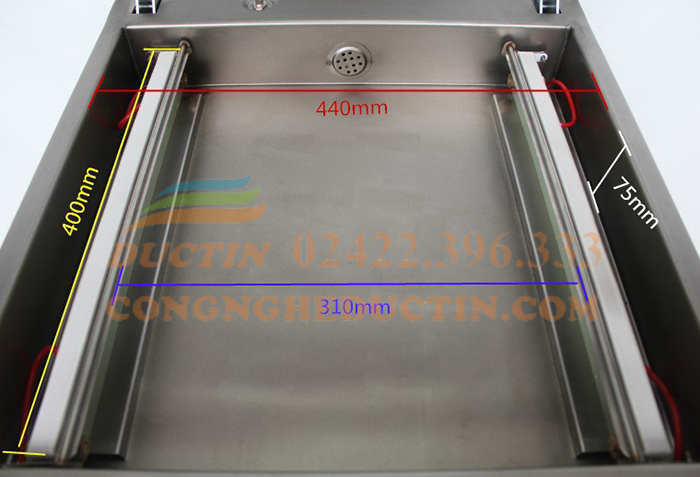 - Máy có 2 thanh hàn 2 bên, có thể sử dụng đồng thời cả 2 thanh để tăng năng suất. Chiều dài mỗi thanh hàn là 40cm nên hút được các loại túi kích thước lớn. Nếu túi bạn cần ép có chiều dài miệng túi là 20cm thì một lần máy bạn có thể hút được 4 túi.