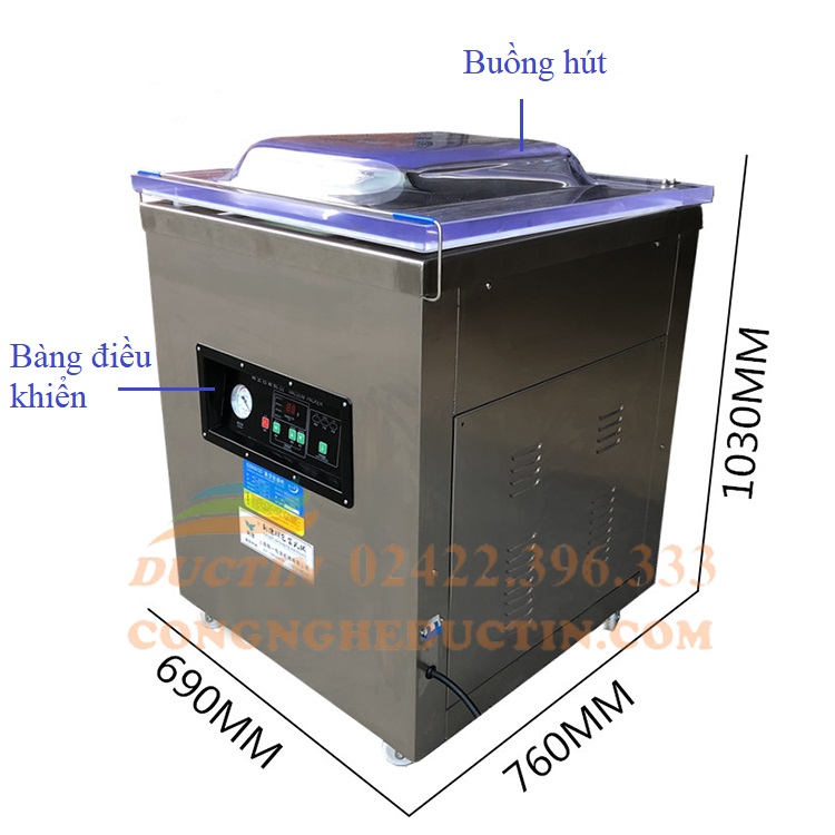 Máy hút chân không DZQ 600 (ĐT-HC11) là máy hút chân không dạng buồng có công suất lớn. Máy có mô tơ hút lớn, buồng hút cũng lớn nên hút được với năng suất cao. Máy được dùng nhiều để hút thực phẩm, hải sản có kích thước lớn hay với số lượng nhiều.