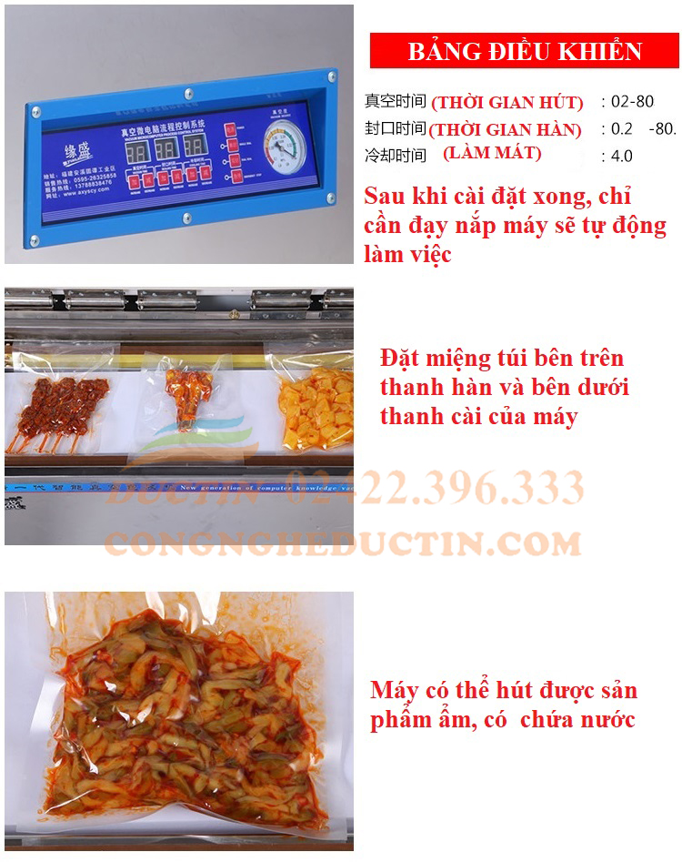 - Có thể điều chỉnh thời gian hàn miệng túi của máy. Do đó máy có thể hút được các loại túi mỏng và dầy đều dễ dàng, không kén túi.