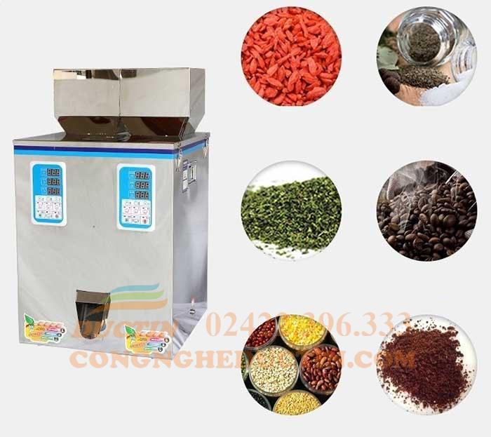 - Máy có thể định lượng hat : thuốc thú y, dược phẩm, các loại ngũ cốc, hoa quả, gạo, linh kiện điện tử,… Khi định lượng hạt cần đặt chế độ chậm, để hạt rơi xuống từ từ,máy sẽ cân chính xác hơn.