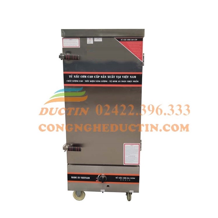 Tủ nấu cơm dùng ga 8 khay ĐT-TC08 là tủ nấu cơm công nghiệp dùng ga, được sản xuất tại Việt Nam. Tủ có thể nấu được 24 kg –  28kg gạo chỉ trong vòng 50 phút, cơm chín đều, không rắn lõi. Tủ được các nhà hàng, quán ăn ưa thích và sử dụng.